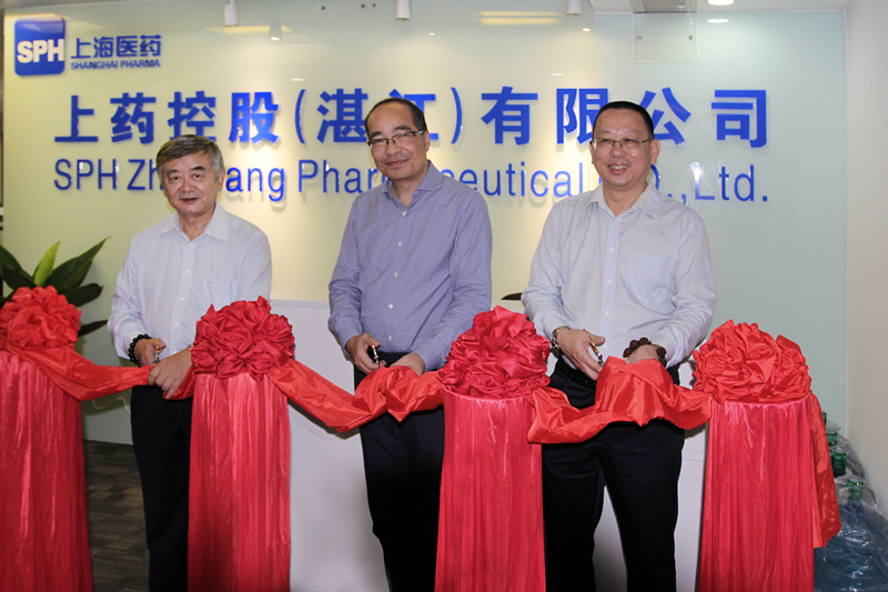 (左一为上药广东公司总经理谭立宁,中间为上药湛江公司董事长杜家荣,右一为上药湛江公司总经理刘雷)